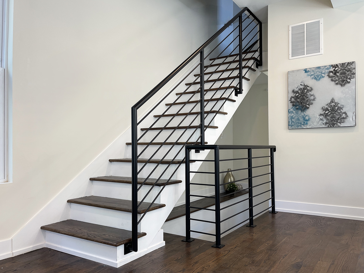 Choose any design from the selection below, or bring your original idea for interior custom metal railings. Every project shown below was crafted in our shop and installed by our team. All designs can be modified to your taste and needs.